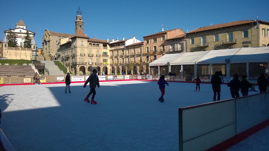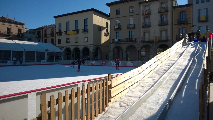 Durante estos días Manlleu cuenta con 800m2 de hielo situados en un entorno emblemático, al aire libre la Plaza Fra Bernadí. Los más atrevidos y expertos podrán disfrutar de una pista de 650m2 de hielo, mientras que los pequeños de la casa pueden hacer sus primeros pasos sobre hielo en la pista pequeña, de 100m2, de la mano de los pingüinos del Badanadal. Un triple tobogán de hielo de más de 20 metros de largo y por el que se baja en trineo y apto para todas las edades, redondea el parque de hielo y hace que las familias disfruten en grupo.